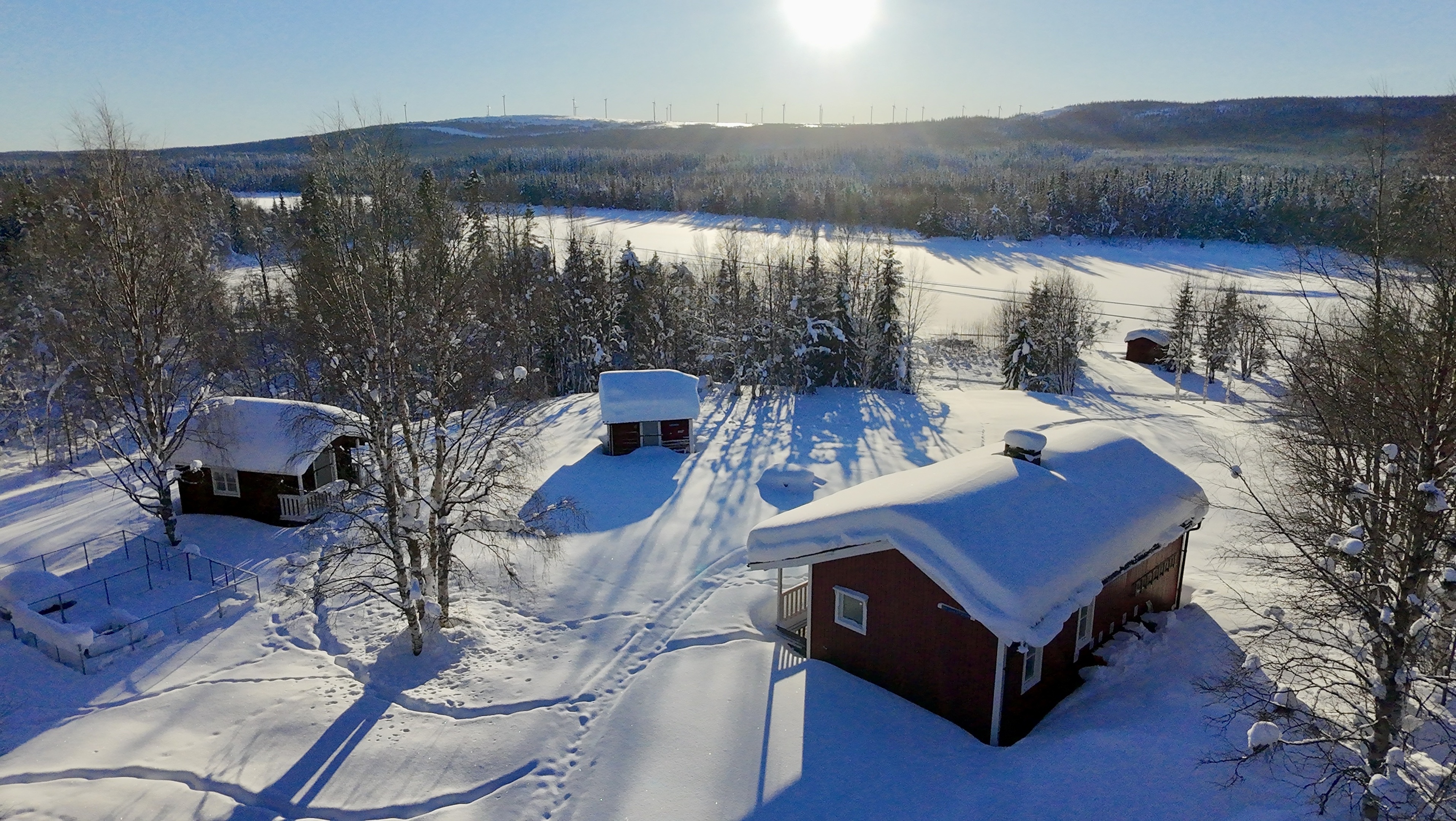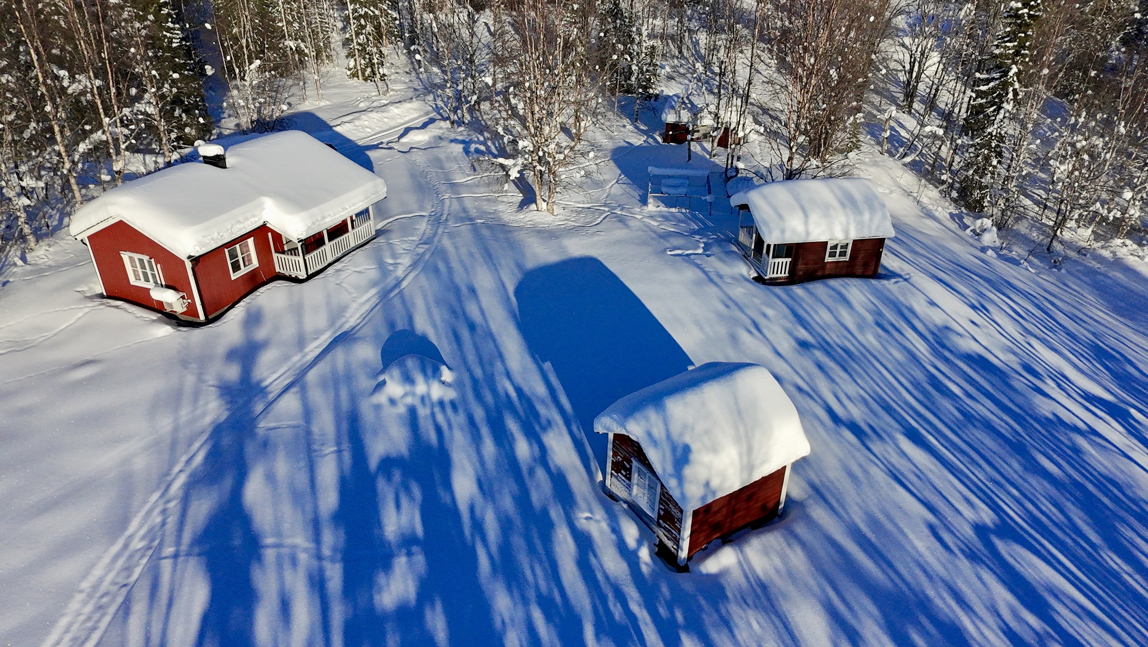 Vår camp har 14 bäddar fördelade på tre stugor, komfortabel övernattning. Eldstad, vedeldad bastu nere vid ån, stor hundgård och samt roddbåtar finns att nyttja.